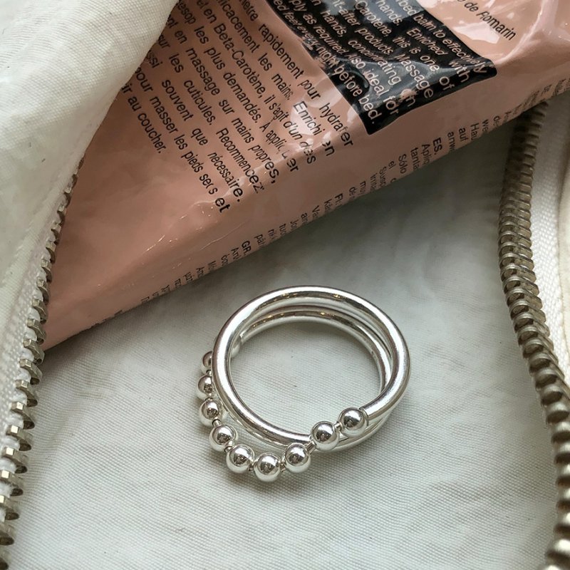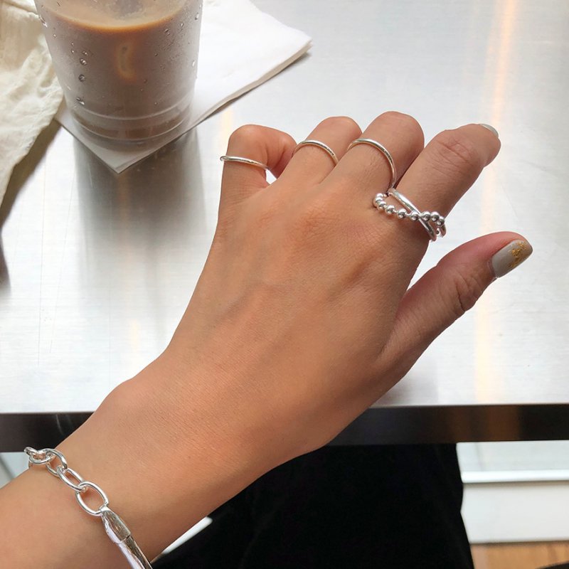 All-match trendy net red 925 sterling silver ring ball ball ring niche ring index finger