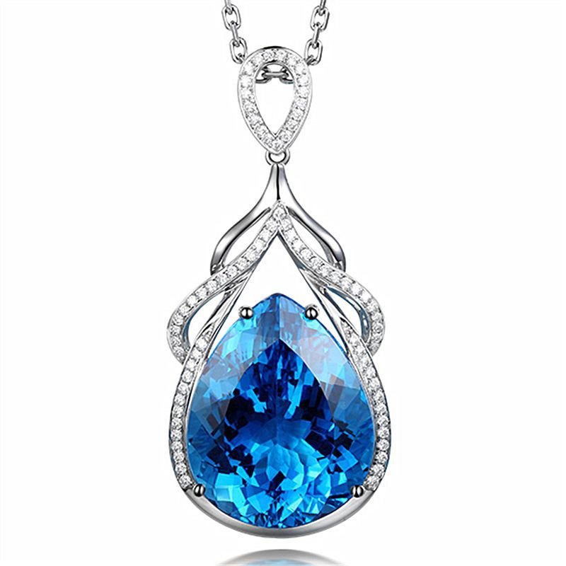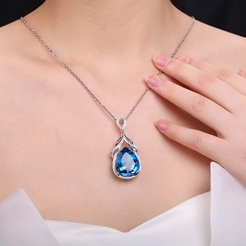 New Topaz Pendant Mermaid Tears Necklace Women's Jewelry Pendant Temperament Aquamarine Clavicle Chain