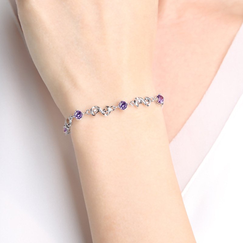 Silver simple personality amethyst bracelet Sen series gift for girlfriends and jewelry for girlfriend