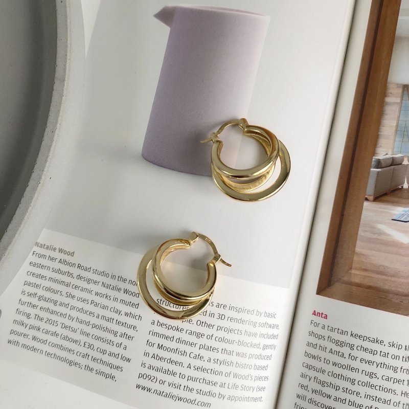 925 sterling silver earrings female style Qiao Mei three circle earrings earrings earrings net red earrings